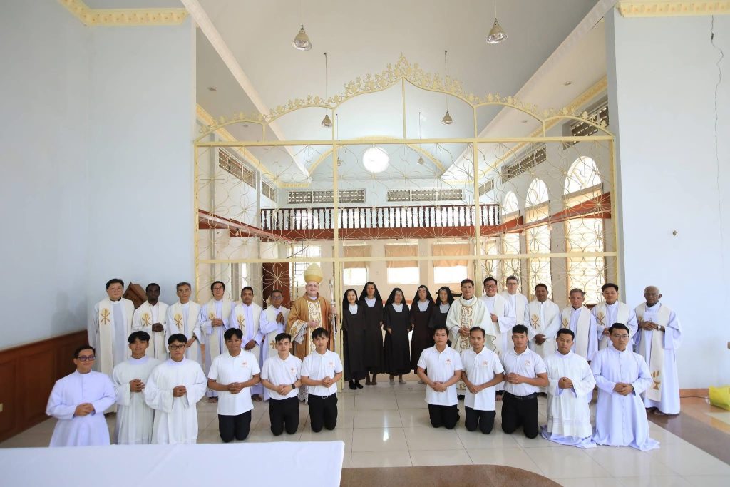The closing ceremony was marked by a Eucharistic celebration presided over by Bishop Olivier Schmitthaeusler, Apostolic Vicar of Phnom Penh, and concelebrated by Bishop Pierre Hangly Suon, Coadjutor Vicar Apostolic of Phnom Penh, and numerous priests.