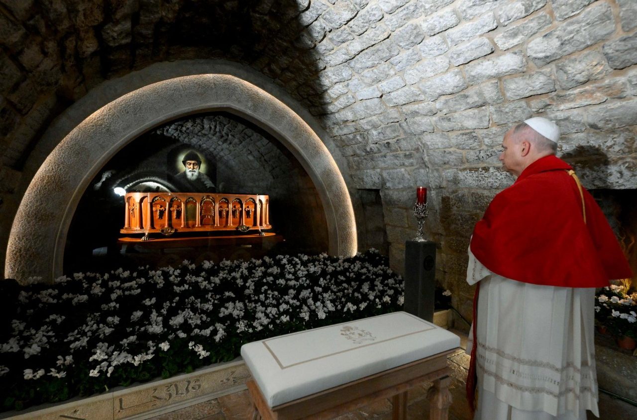 On the second day of his Apostolic Visit to Lebanon, Pope Leo XIV visits the tomb of St. Charbel, saying he taught “prayer to those who live without God, silence to those who live amid noise … and poverty to those who pursue riches.”