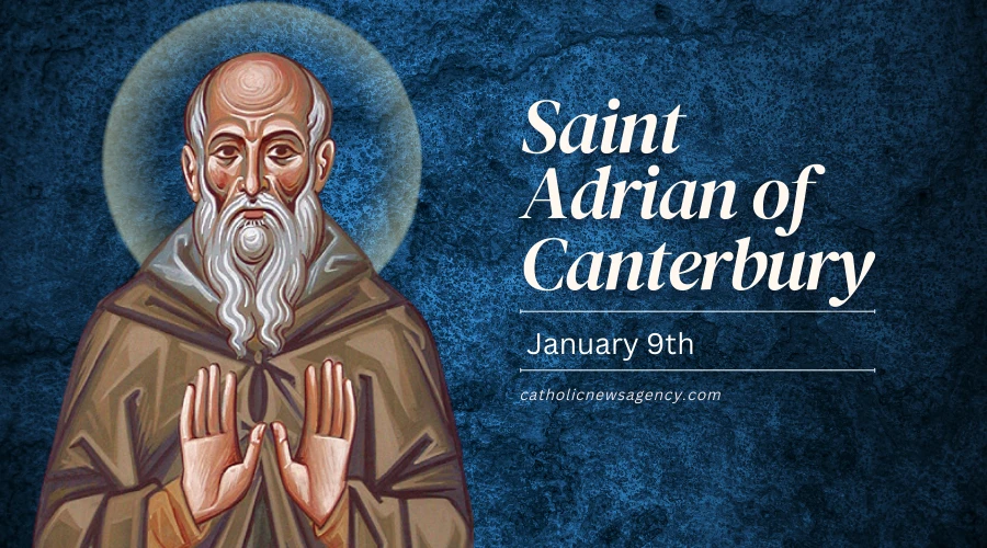 St. Adrain died on Jan. 9 at Canterbury, Kent. Several hundred years after his death, Adrian’s body was discovered in an incorrupt state.